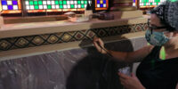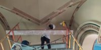 Las pinturas murales del colateral este empiezan a recobrar su colorido