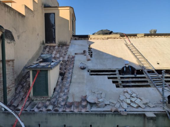 En marcha las actuaciones en la cubierta principal de la Iglesia La cubierta sufre filtraciones de agua que penetran en la bóveda y deterioran las pinturas murales. Las obras permitirán sustituir todos los elementos deteriorados y subsanar la permeabilización de la zona. Aunque aparentemente la cubierta está bien, la realidad es que sufre numerosas filtraciones…